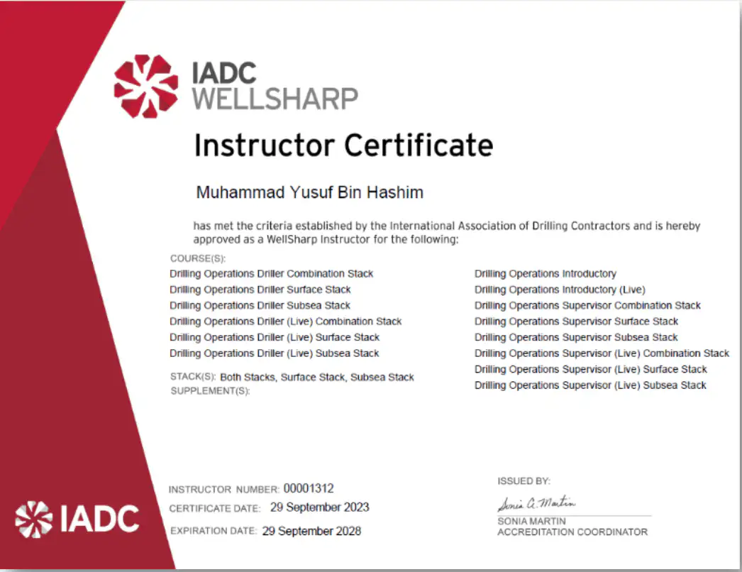 Our instructor is your local people. What you fear most in well control made easy by this 8-year experience of well control instructor, with returning Drilling Supervisor role!