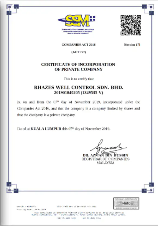 Rhazes certifications are trusted by drilling companies across Asia.